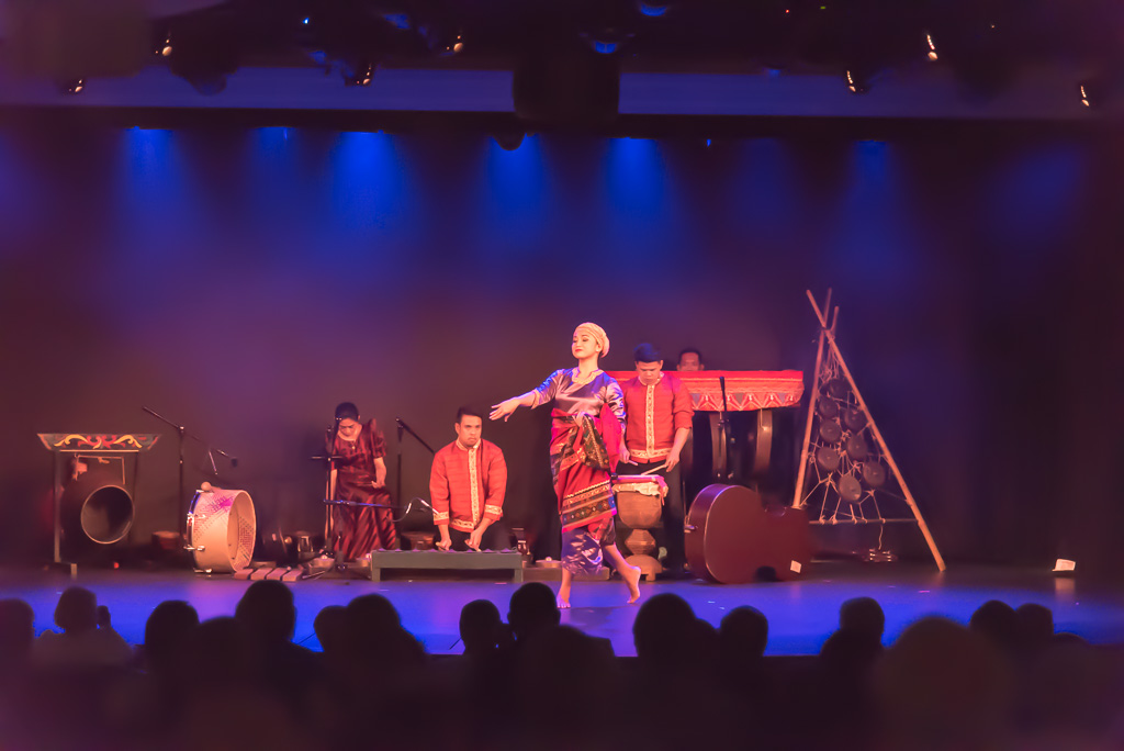 The last treat of the day, before, sailaway, was a performance onboard by Bayanihan, the National Folk Dance Company of the Philippines. What a magnificent performance. (My photos don't begin to do it justice because I couldn't satisfy the competing need for light in a low-light, no-flash environment and a fast shutter speed to freeze movement. Resulting high ISO makes for noisy photos.)